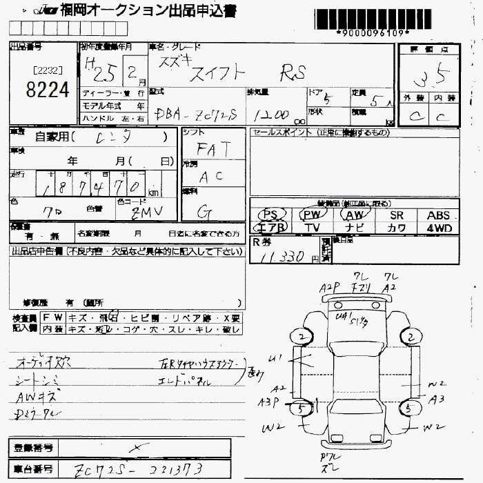 Suzuki Swift, 2013 года - Лот№8224 ★3.5