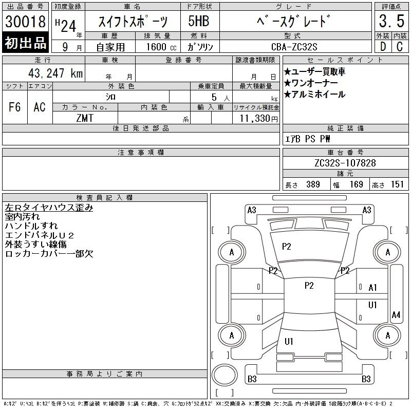 Suzuki Swift, 2012 года - Лот№30018 ★3.5