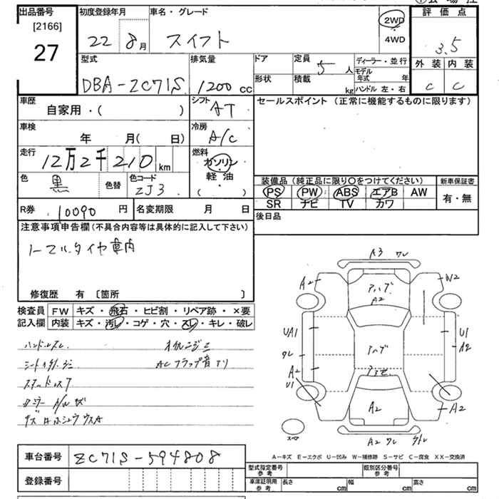 Suzuki Swift, 2010 года - Лот№27 ★3.5