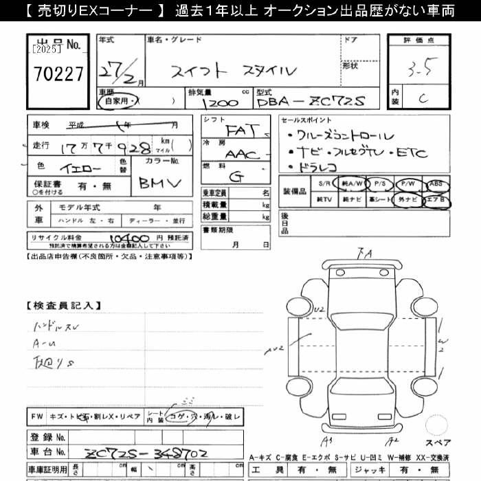 Suzuki Swift, 2015 года - Лот№70227 ★3.5