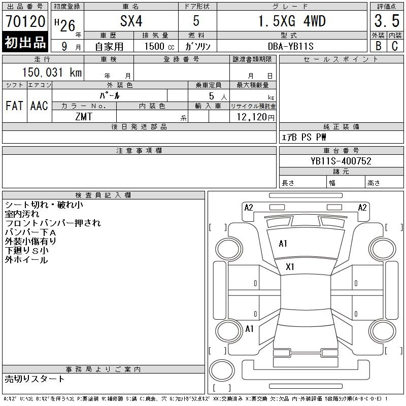 Suzuki Sx-4, 2014 года - Лот№70120 ★3.5