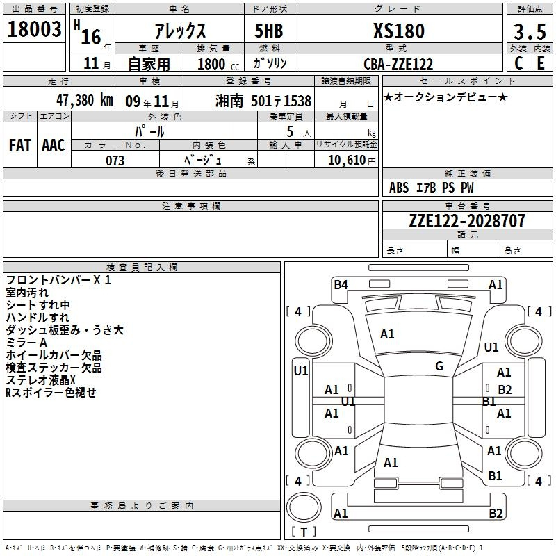 Toyota Allex, 2004 года - Лот№18003 ★3.5