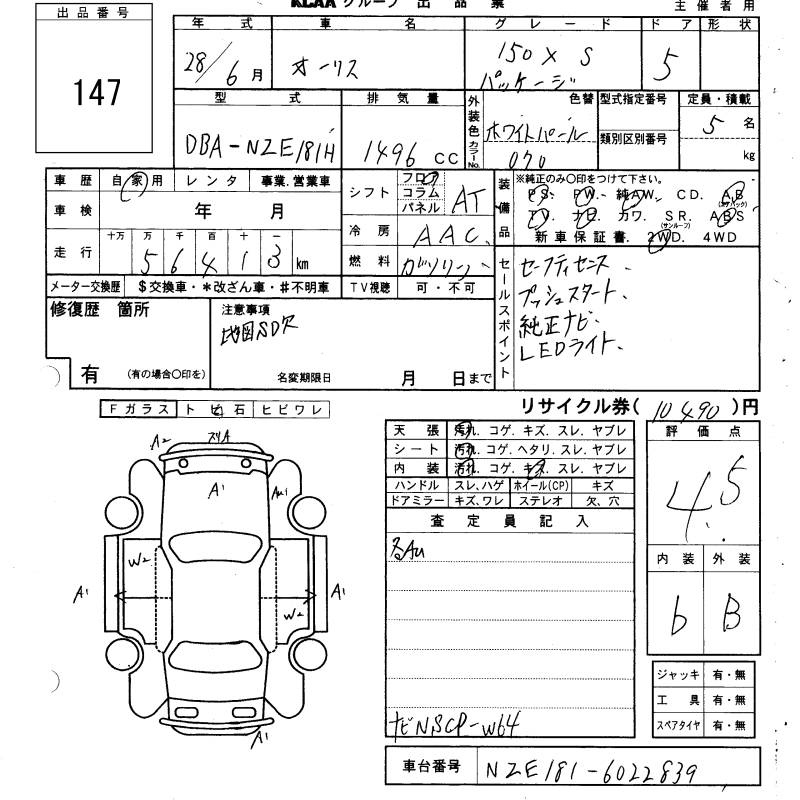Toyota Auris, 2016 года - Лот№147 ★4.5