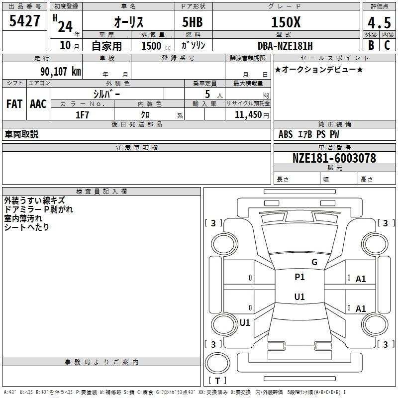 Toyota Auris, 2012 года - Лот№5427 ★4.5