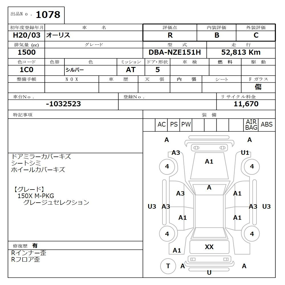 Toyota Auris, 2008 года - Лот№1078 ★R
