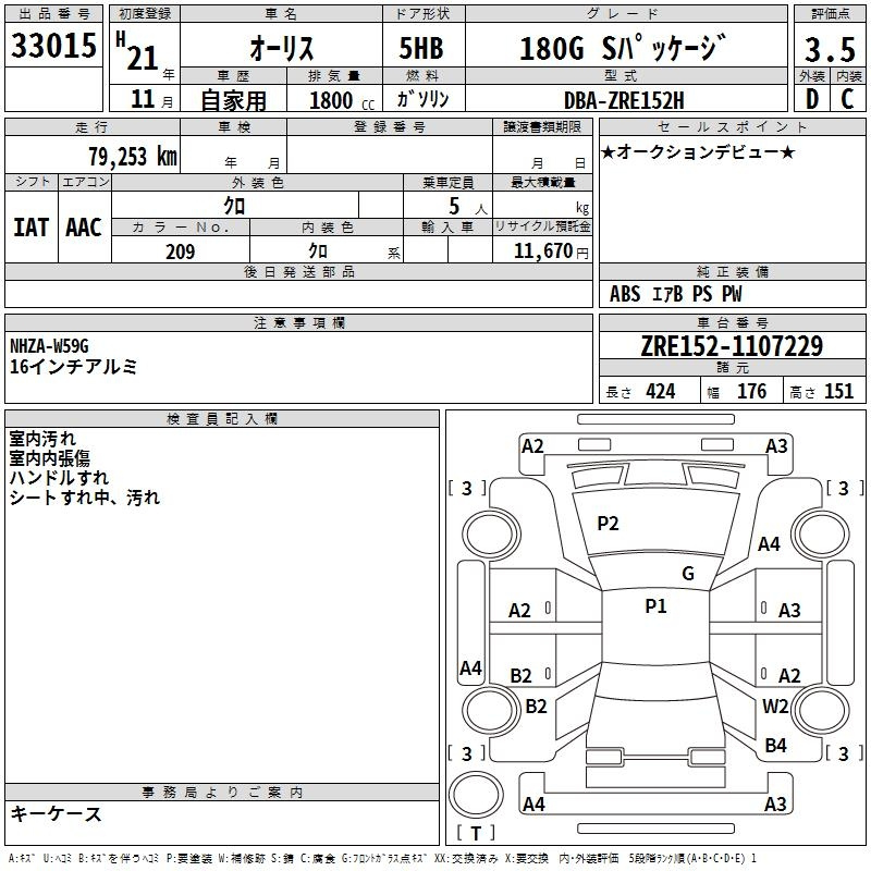 Toyota Auris, 2009 года - Лот№33015 ★3.5