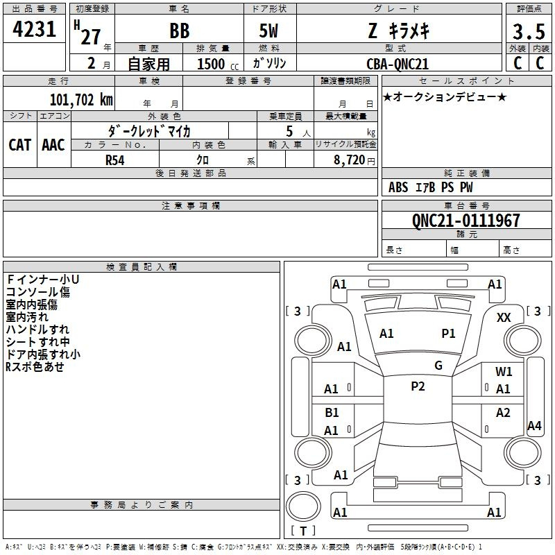 Toyota Bb, 2015 года - Лот№4231 ★3.5