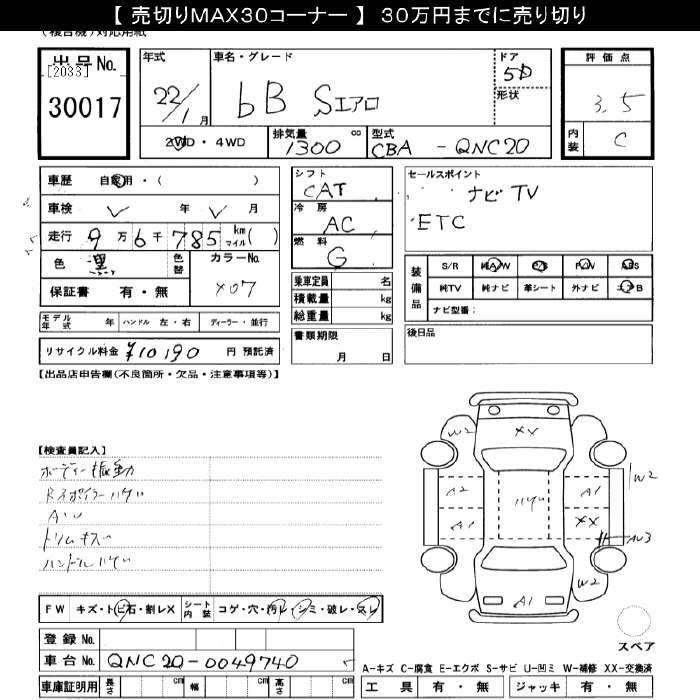 Toyota Bb, 2010 года - Лот№30017 ★3.5