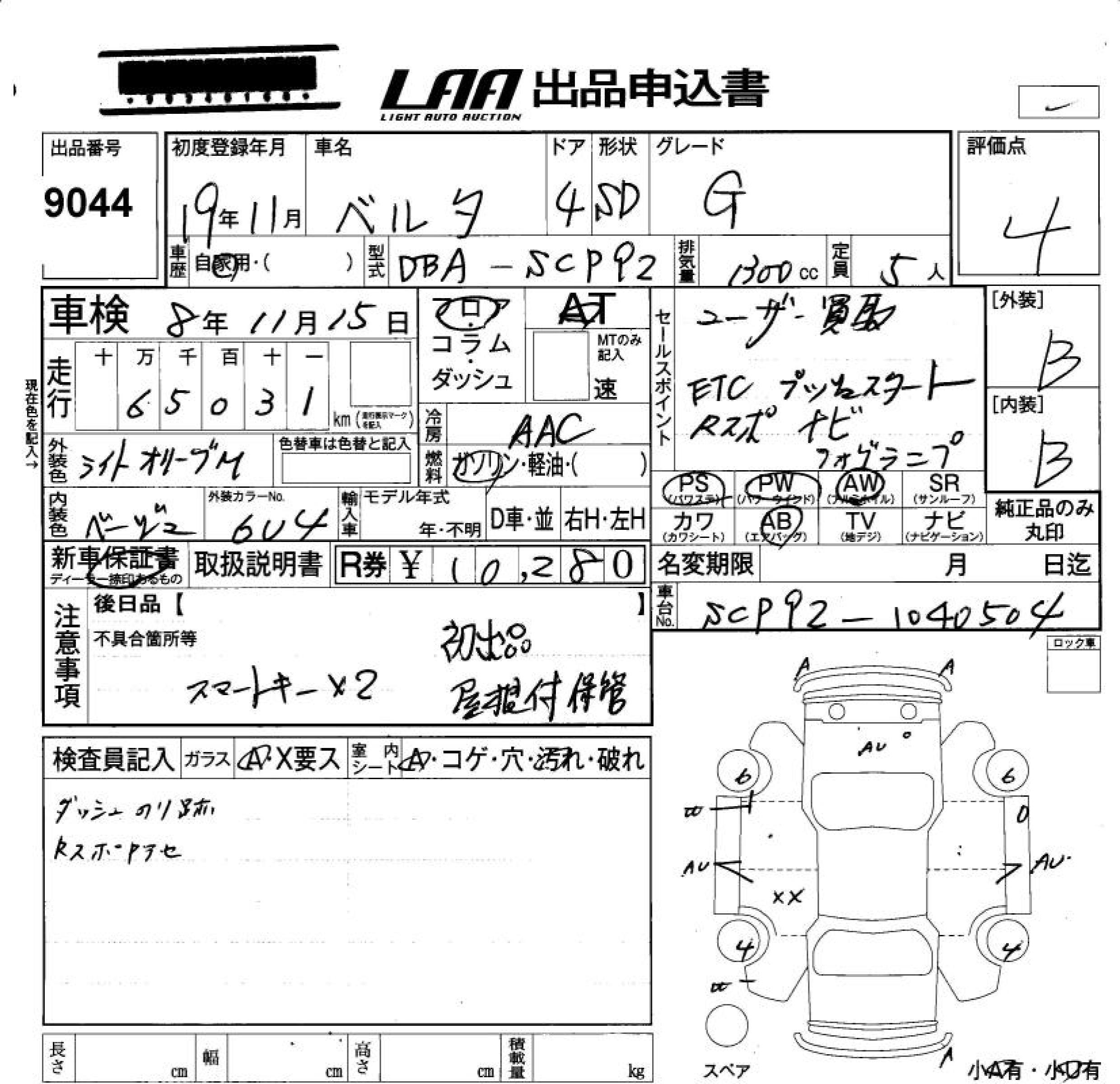 Toyota Belta, 2007 года - Лот№9044 ★4