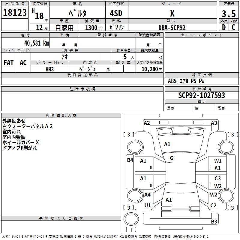 Toyota Belta, 2006 года - Лот№18123 ★3.5