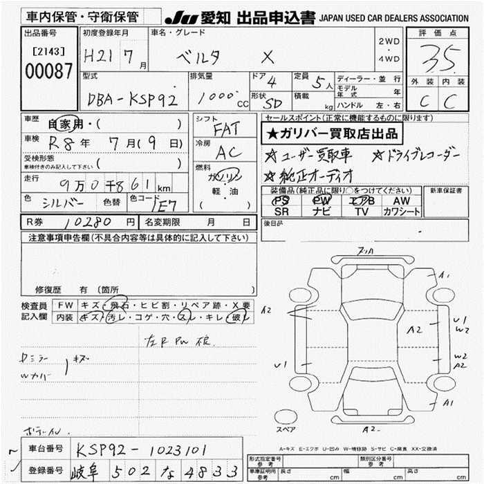 Toyota Belta, 2009 года - Лот№87 ★3.5