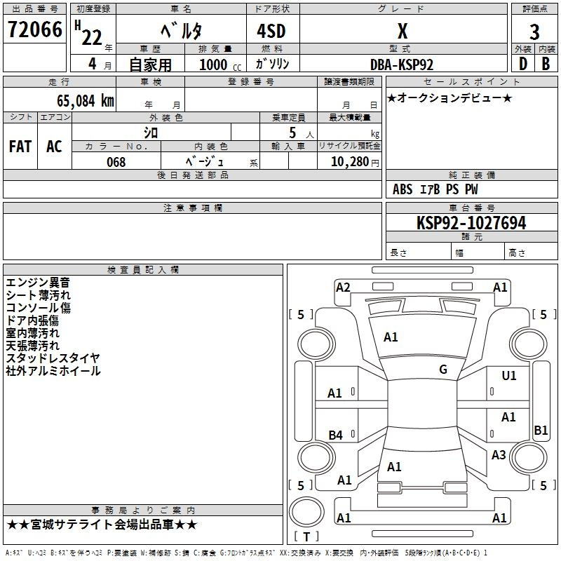 Toyota Belta, 2010 года - Лот№72066 ★3