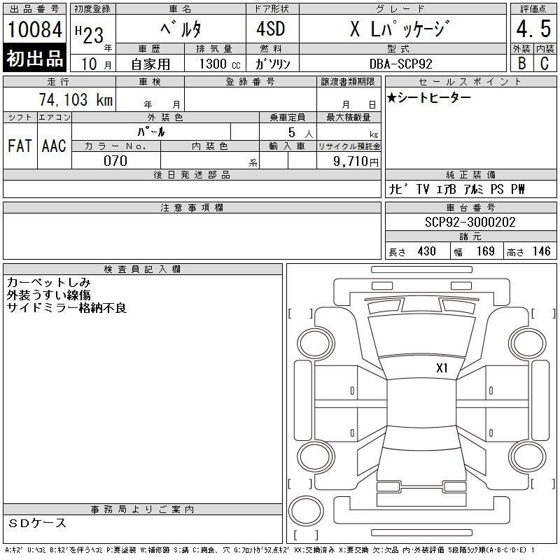 Toyota Belta, 2011 года - Лот№10084 ★4.5