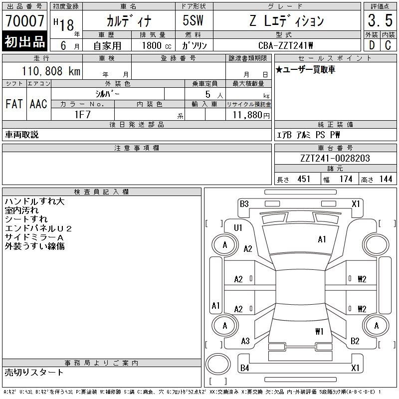Toyota Caldina, 2006 года - Лот№70007 ★3.5