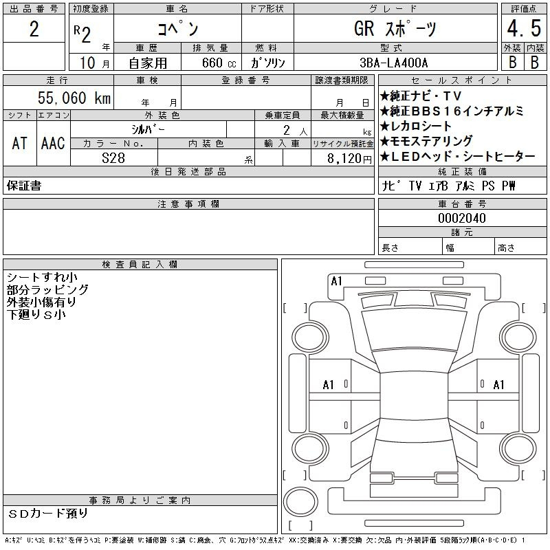 Toyota Copen, 2020 года - Лот№2 ★4.5