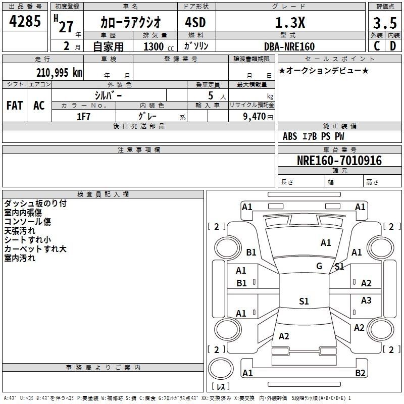 Toyota Corolla axio, 2015 года - Лот№4285 ★3.5