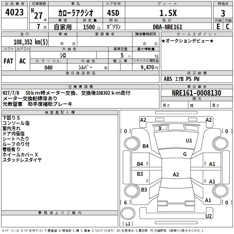 Toyota Corolla axio, 2015 года - Лот№4023 ★3