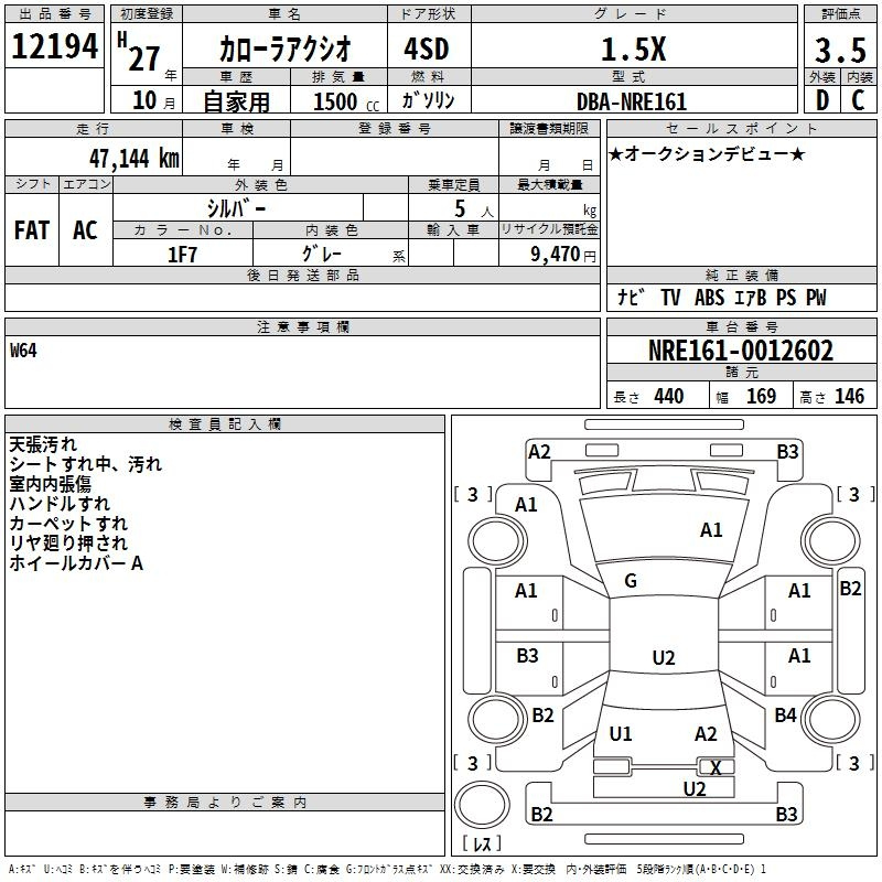 Toyota Corolla axio, 2015 года - Лот№12194 ★3.5