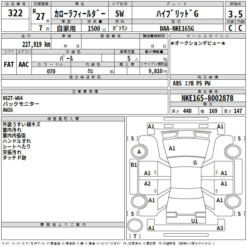 Toyota Corolla axio, 2016 года - Лот№322 ★3.5