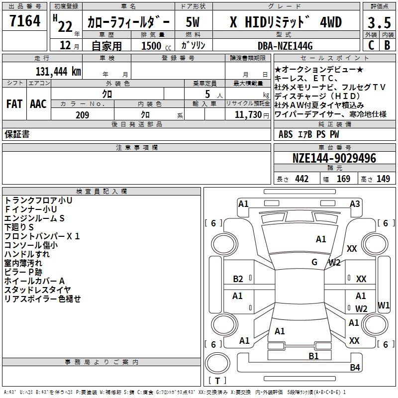 Toyota Corolla fielder, 2010 года - Лот№7164 ★3.5