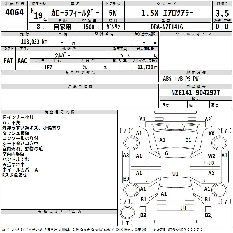 Toyota Corolla fielder, 2007 года - Лот№4064 ★3.5