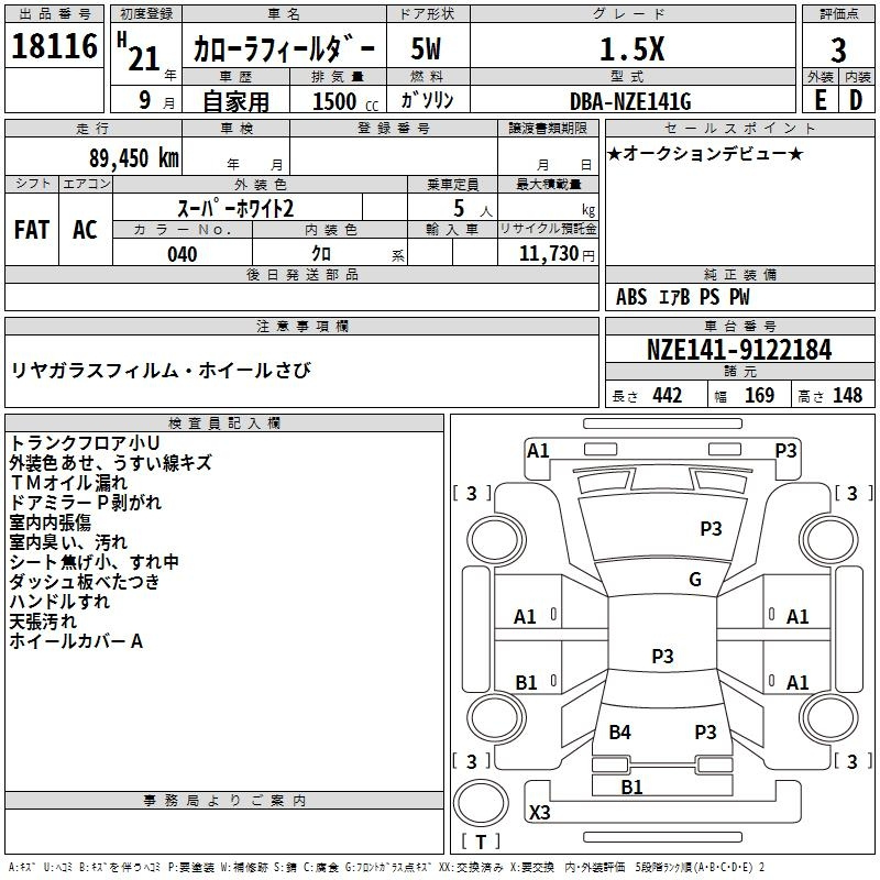 Toyota Corolla fielder, 2009 года - Лот№18116 ★3