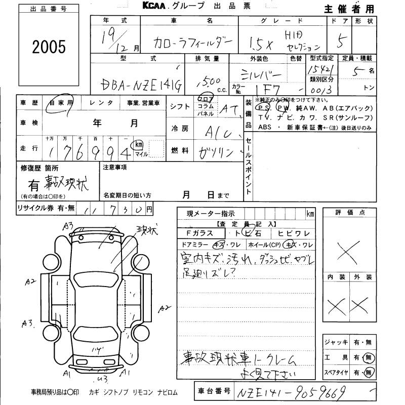 Toyota Corolla fielder, 2007 года - Лот№2005 ★X