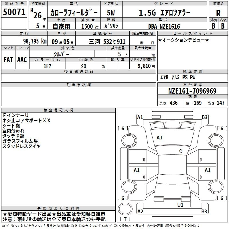 Toyota Corolla fielder, 2014 года - Лот№50071 ★R