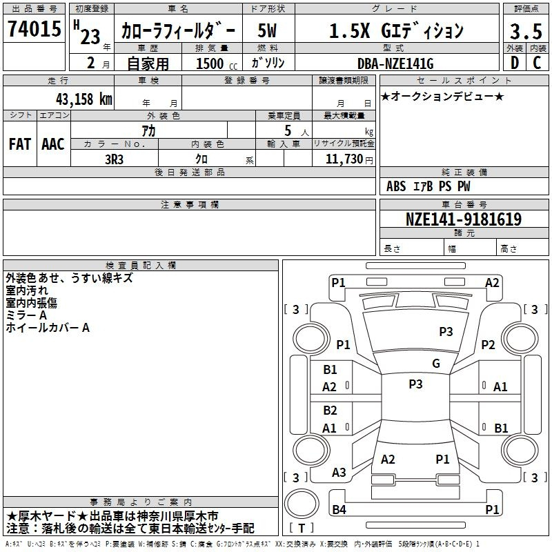 Toyota Corolla fielder, 2011 года - Лот№74015 ★3.5
