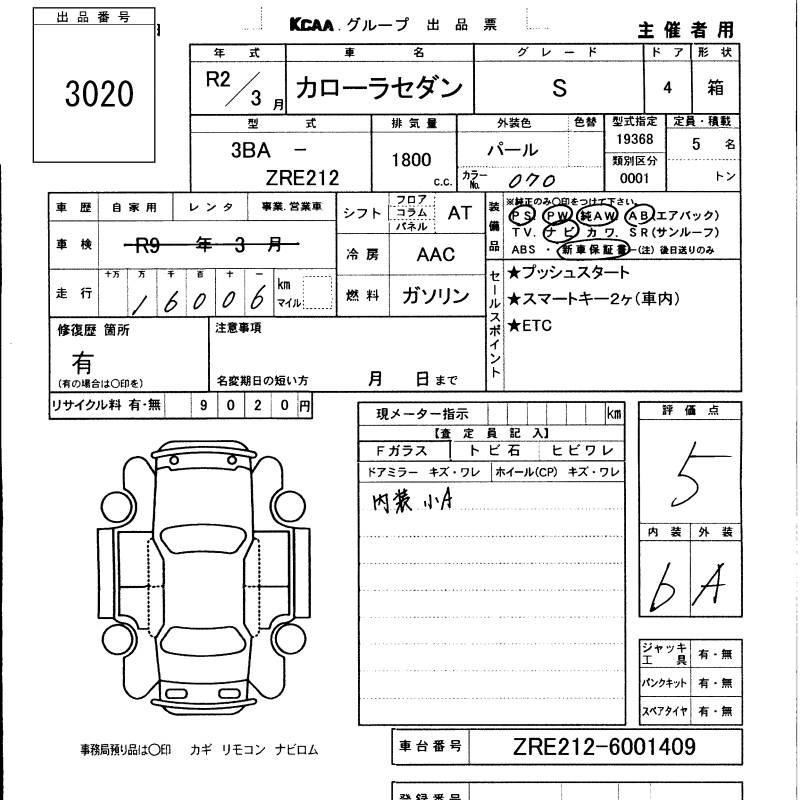 Toyota Corolla, 2020 года - Лот№3020 ★5