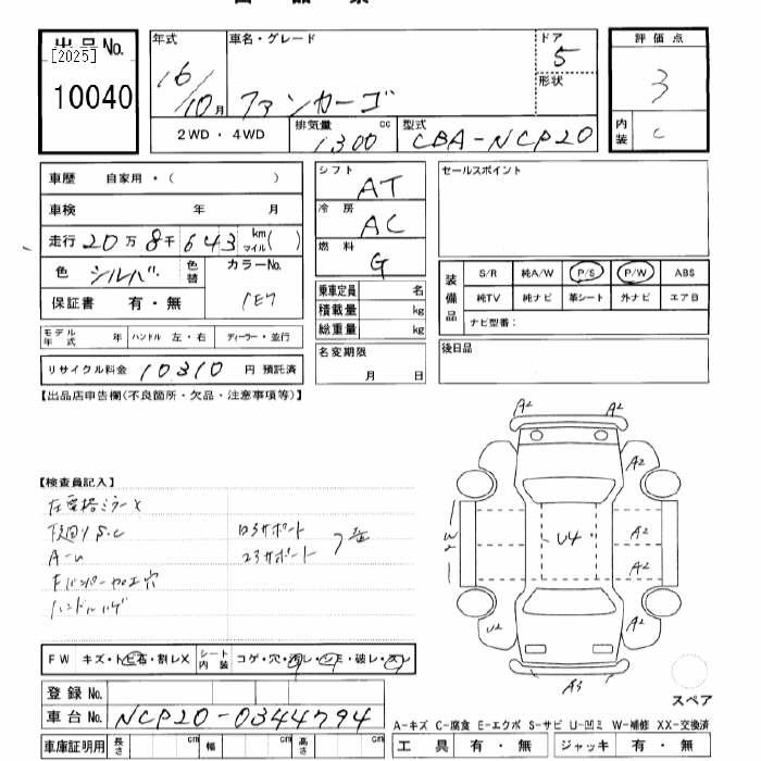 Toyota Funcargo, 2004 года - Лот№10040 ★3