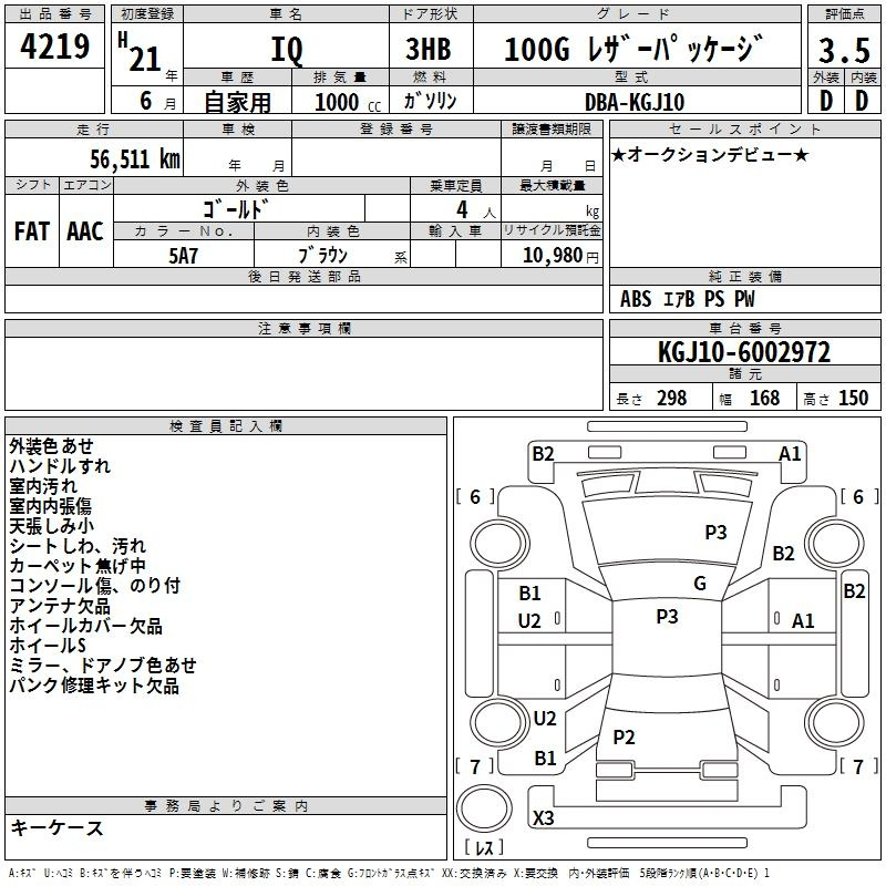 Toyota Iq, 2009 года - Лот№4219 ★3.5