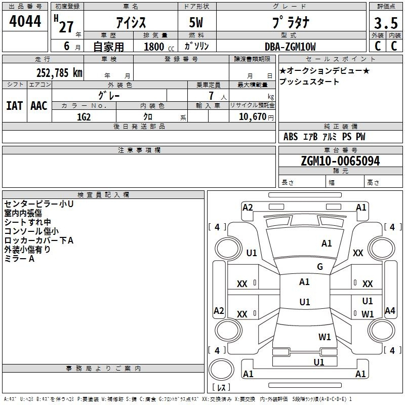 Toyota Isis, 2015 года - Лот№4044 ★3.5