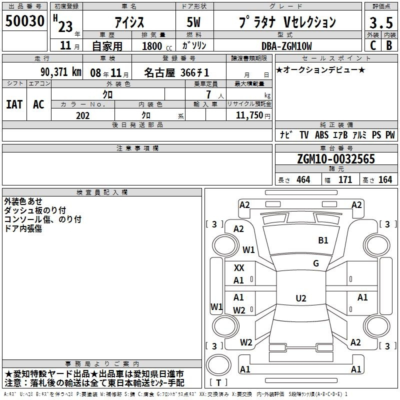 Toyota Isis, 2011 года - Лот№50030 ★3.5