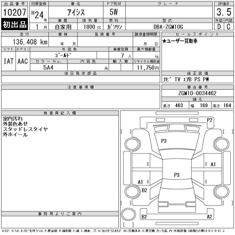 Toyota Isis, 2012 года - Лот№10207 ★3.5