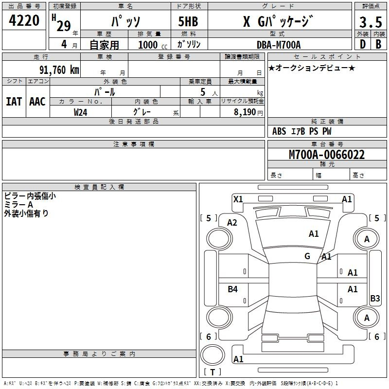 Toyota Passo, 2017 года - Лот№4220 ★3.5