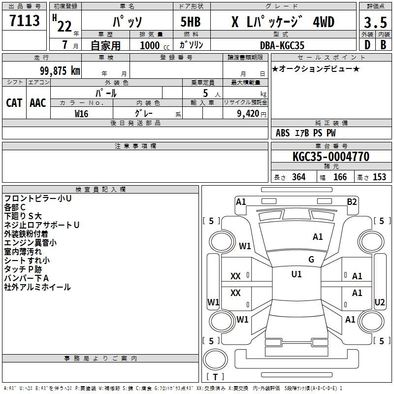 Toyota Passo, 2010 года - Лот№7113 ★3.5