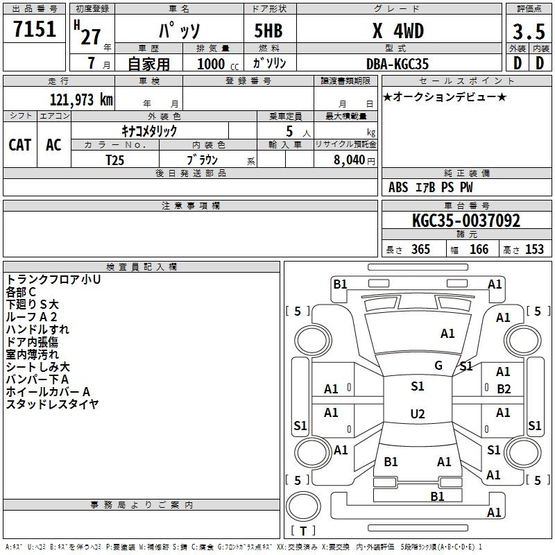 Toyota Passo, 2015 года - Лот№7151 ★3.5