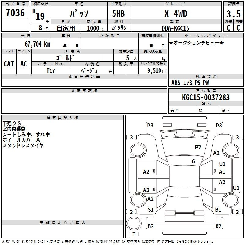 Toyota Passo, 2007 года - Лот№7036 ★3.5