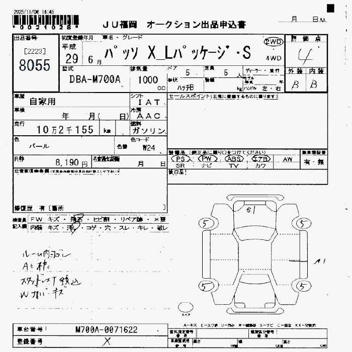 Лот№8055 16 Ноября 2025 года JU Fukuoka