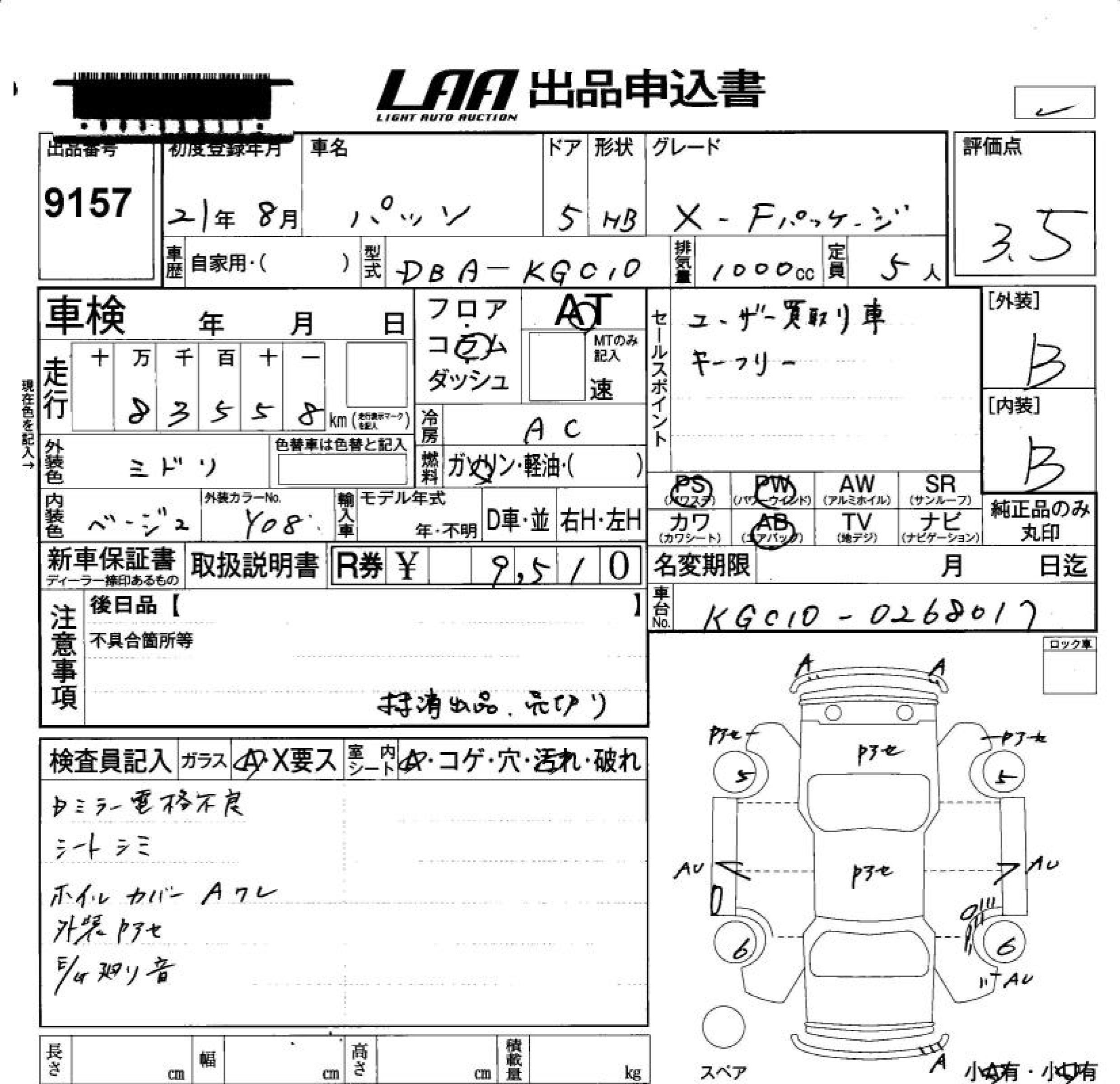 Toyota Passo, 2009 года - Лот№9157 ★3.5