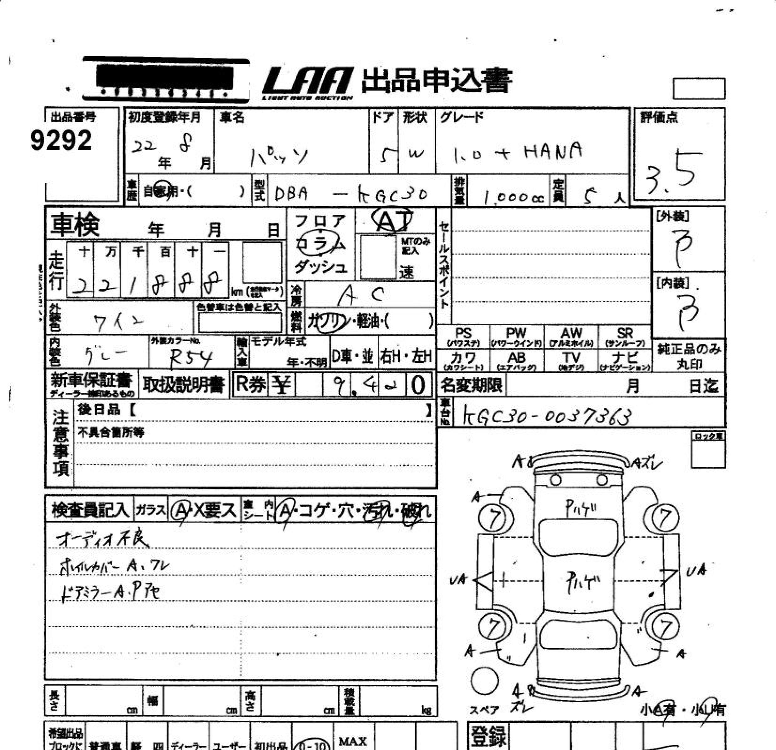 Toyota Passo, 2010 года - Лот№9292 ★3.5