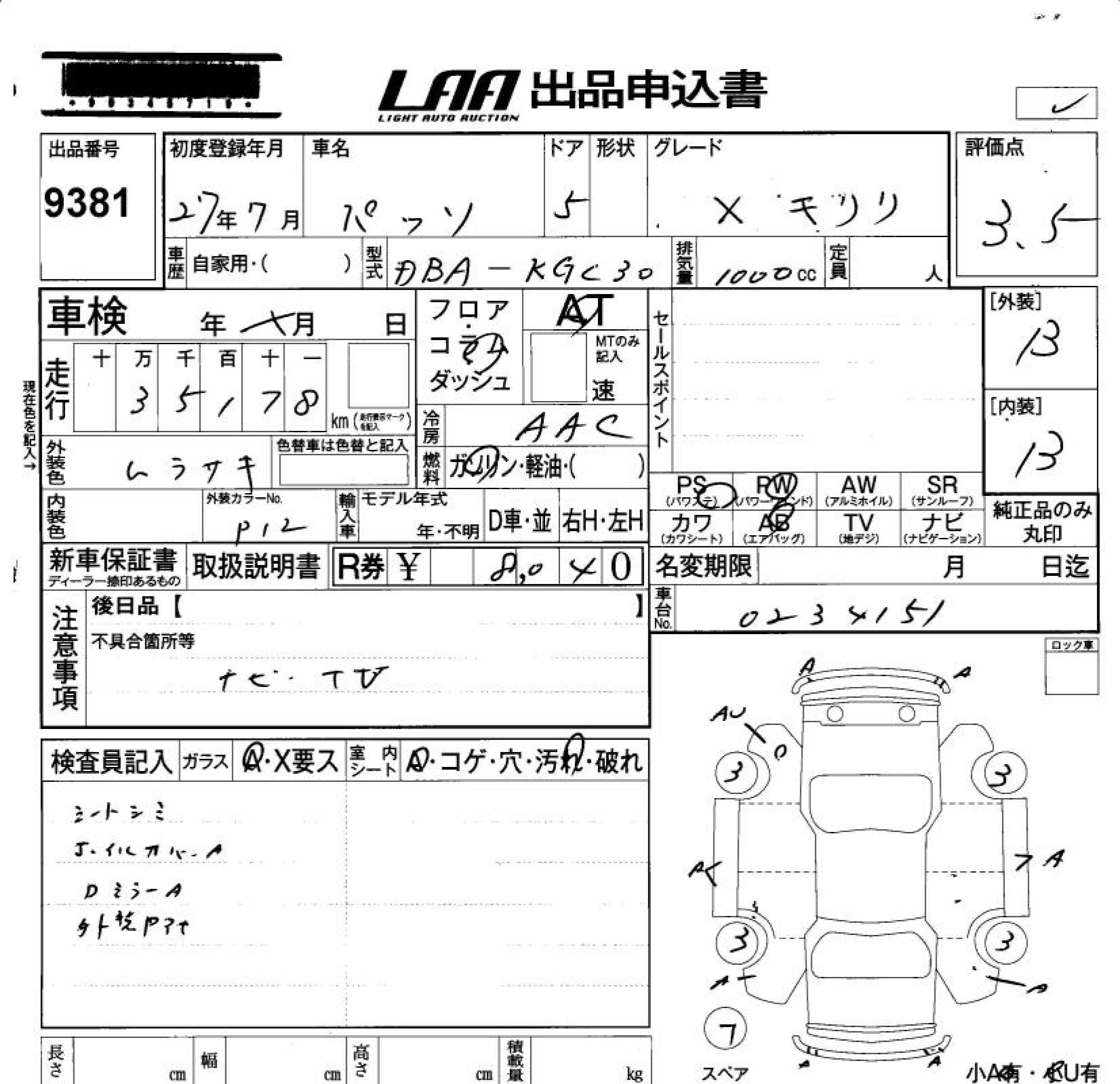 Toyota Passo, 2015 года - Лот№9381 ★3.5
