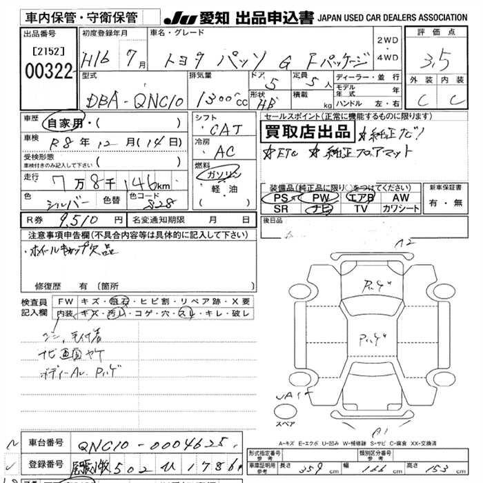 Toyota Passo, 2004 года - Лот№322 ★3.5