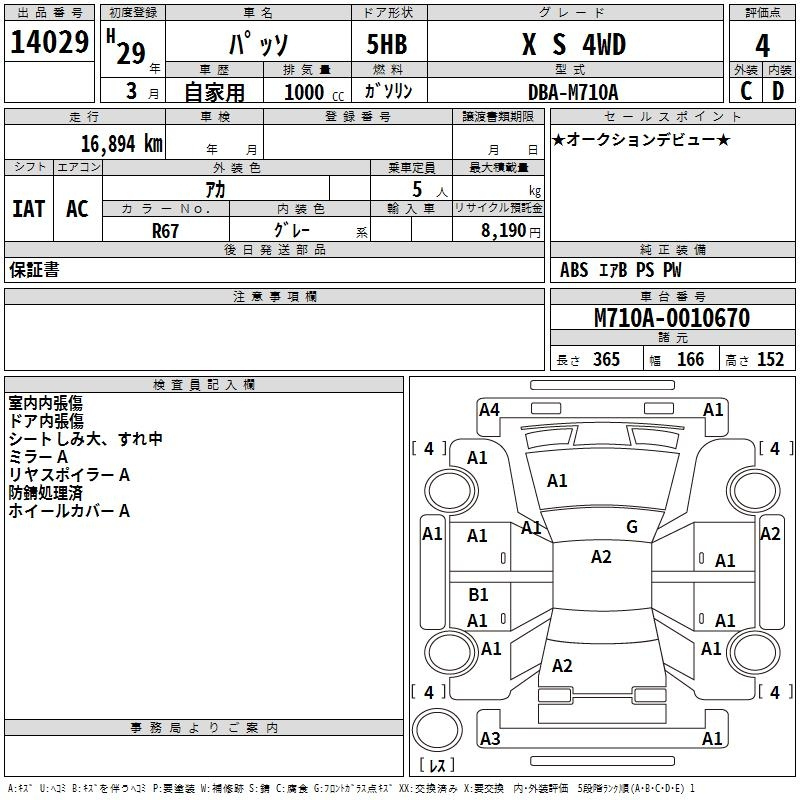 Toyota Passo, 2017 года - Лот№14029 ★4
