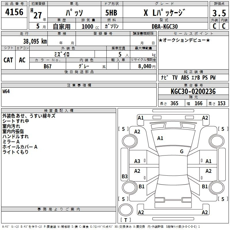 Toyota Passo, 2015 года - Лот№4156 ★3.5