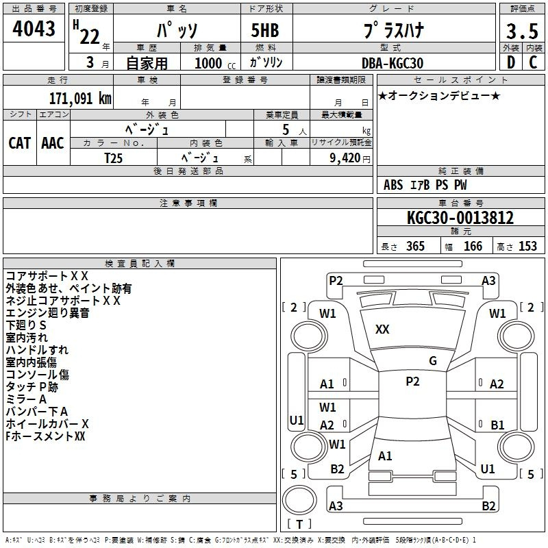 Toyota Passo, 2010 года - Лот№4043 ★3.5