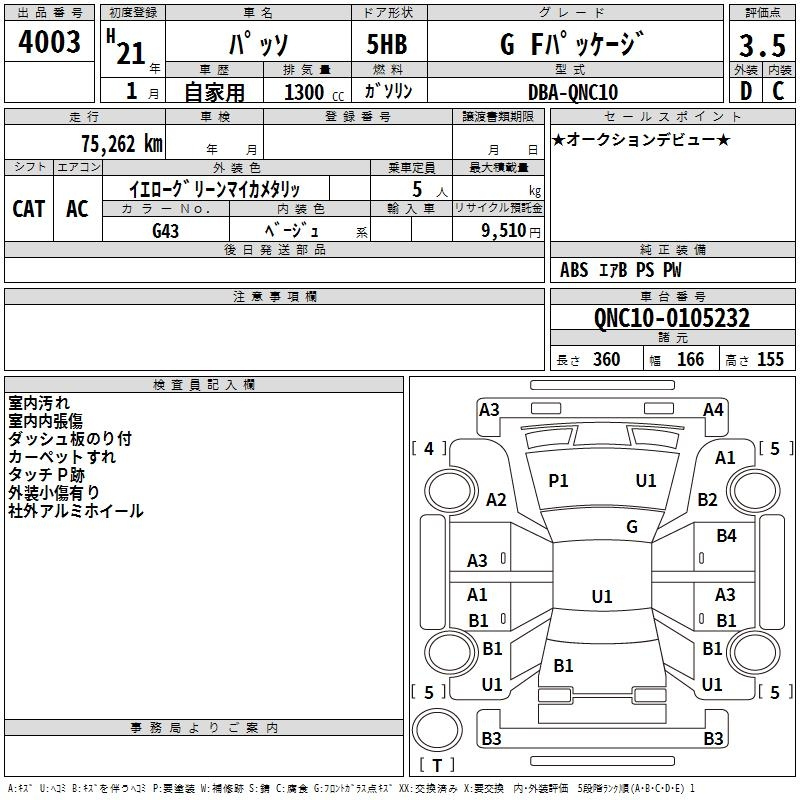 Toyota Passo, 2009 года - Лот№4003 ★3.5