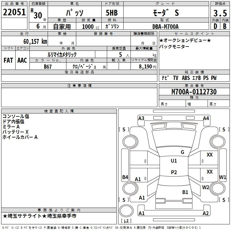 Toyota Passo, 2018 года - Лот№22051 ★3.5