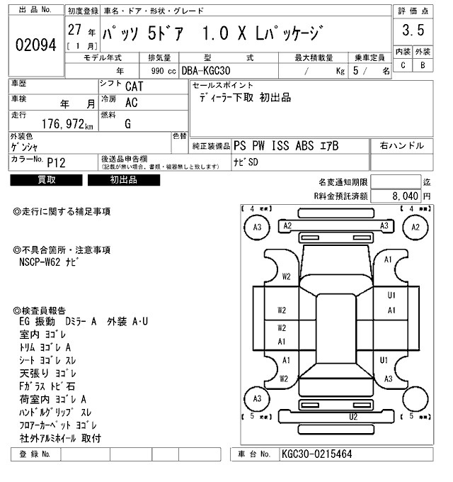 Toyota Passo, 2015 года - Лот№2094 ★3.5